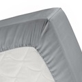Chic grey satin fitted sheet, by Damai Organics. The fitted sheet is made of 100% organic cotton, GOTS-certified. The topper fitted sheet is suitable for toppers up to 15 cm and has a single split of 85-90 cm at the top that is suitable for movable beds or box springs. This allows the bed to be adjusted without the fitted sheet sliding. The all-round elastic in the seam ensures a good fit around the mattress. The fitted sheet is available in several sizes.